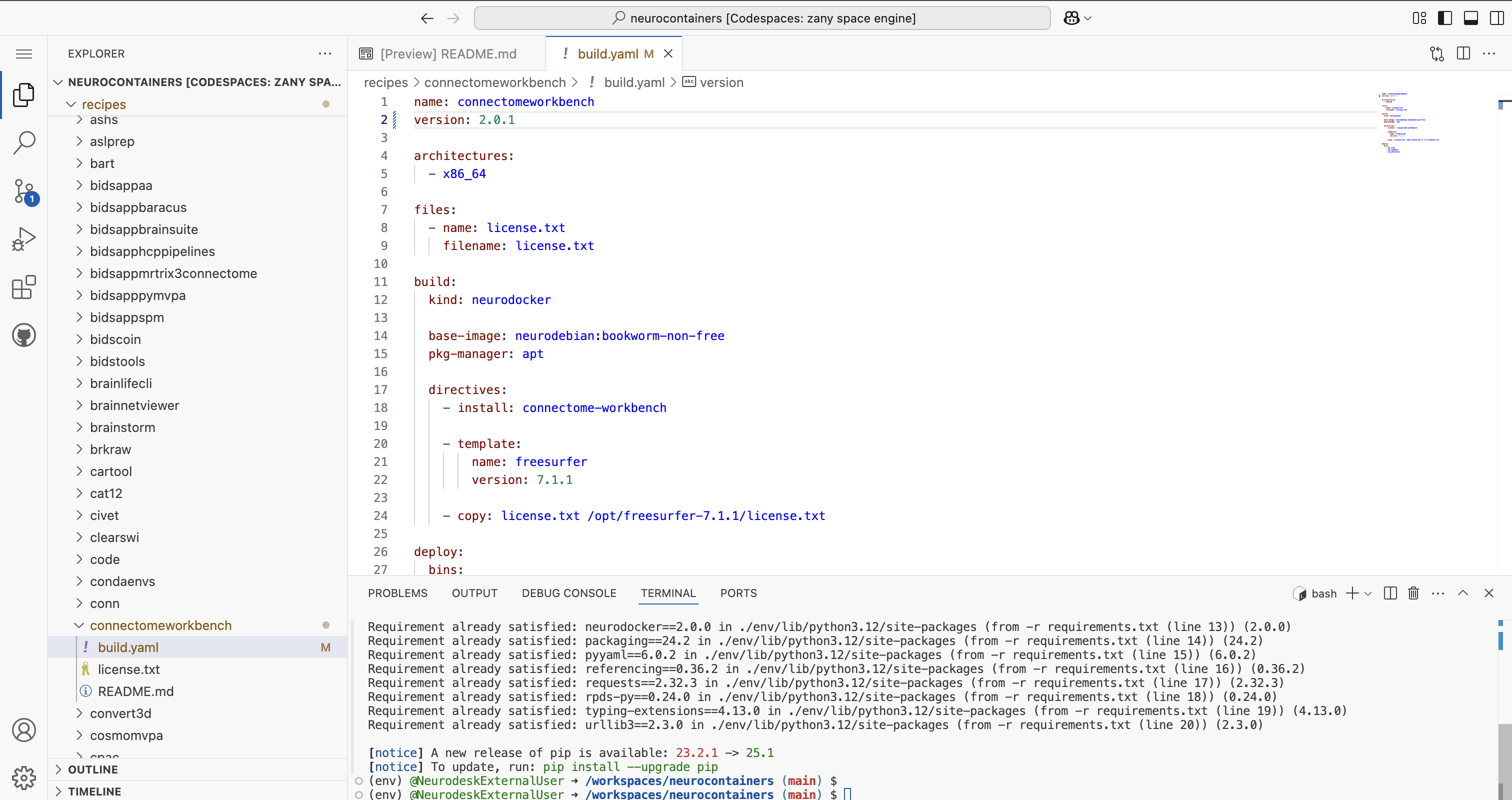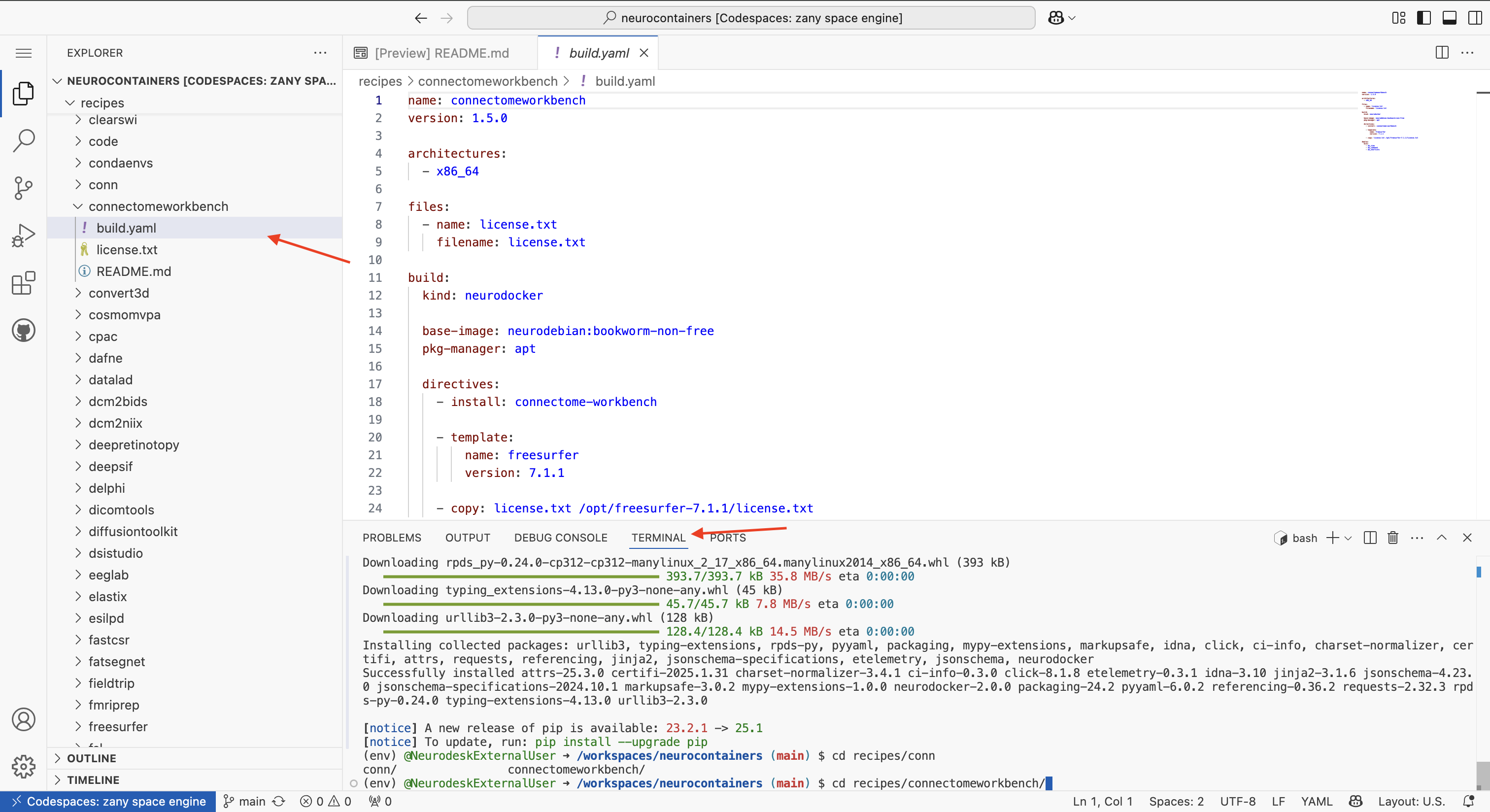 recipes/connectomeworkbench/. - Using the terminal, you can use: