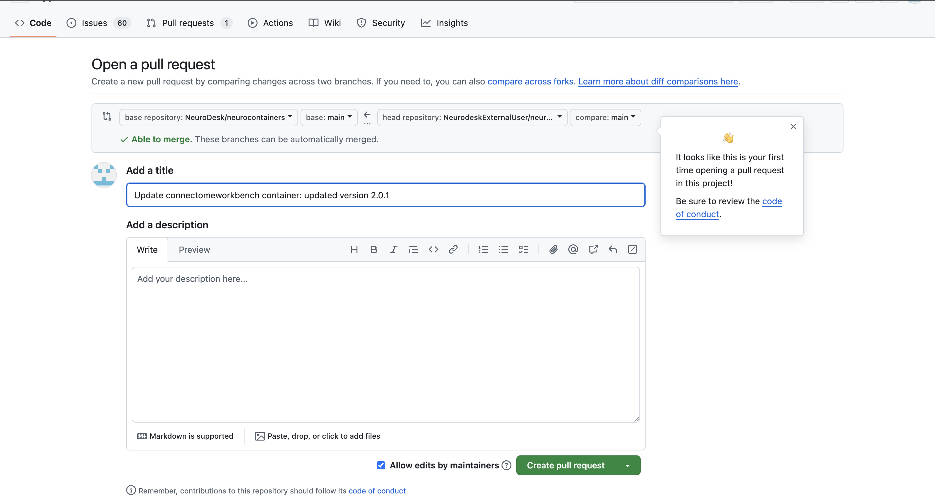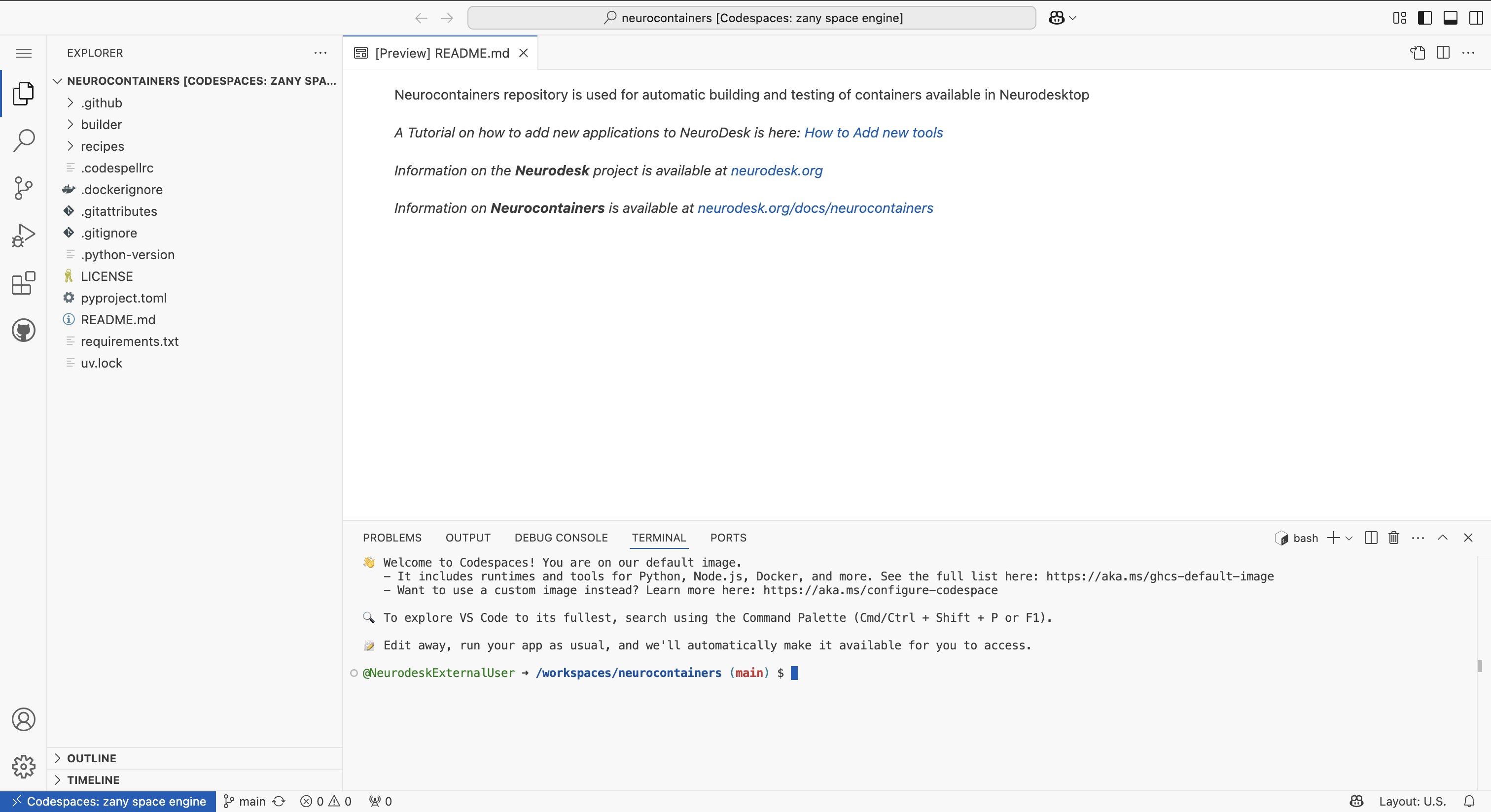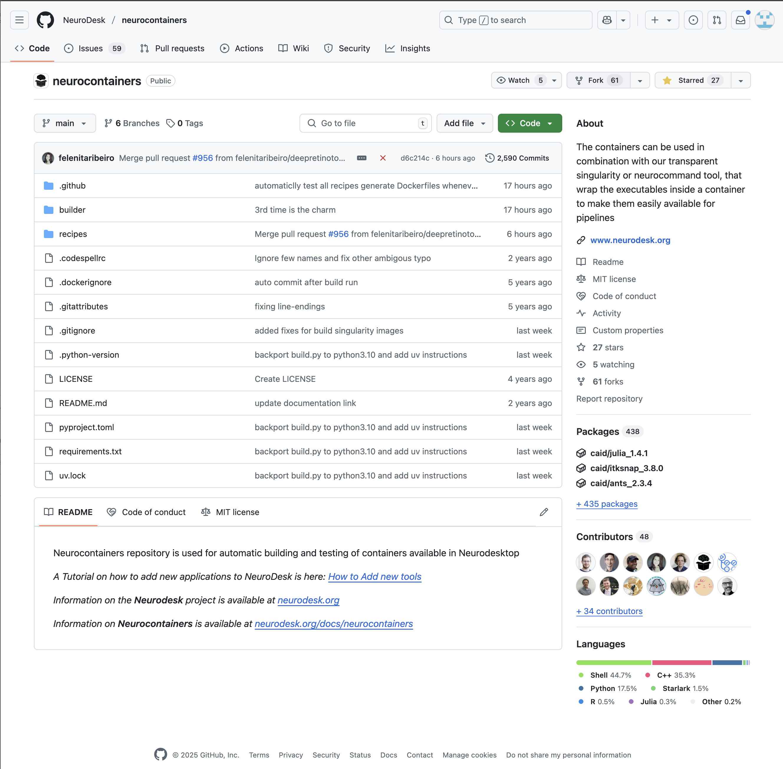 In the top left corner, you can see that you are in your forked repository of the neurocontainers repository.