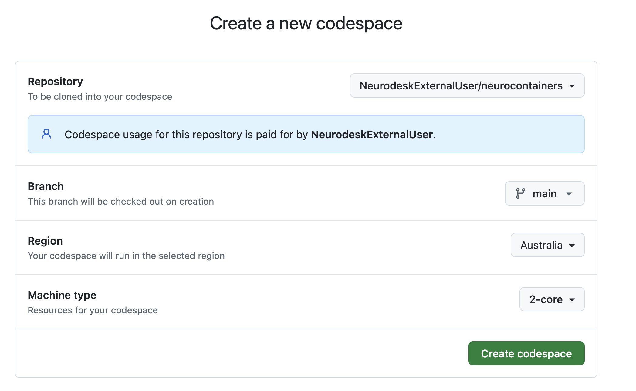 Most neurocontainers run smoothly on a 2-core machine. For containers with heavier computational demands, consider using a 4-core machine.
